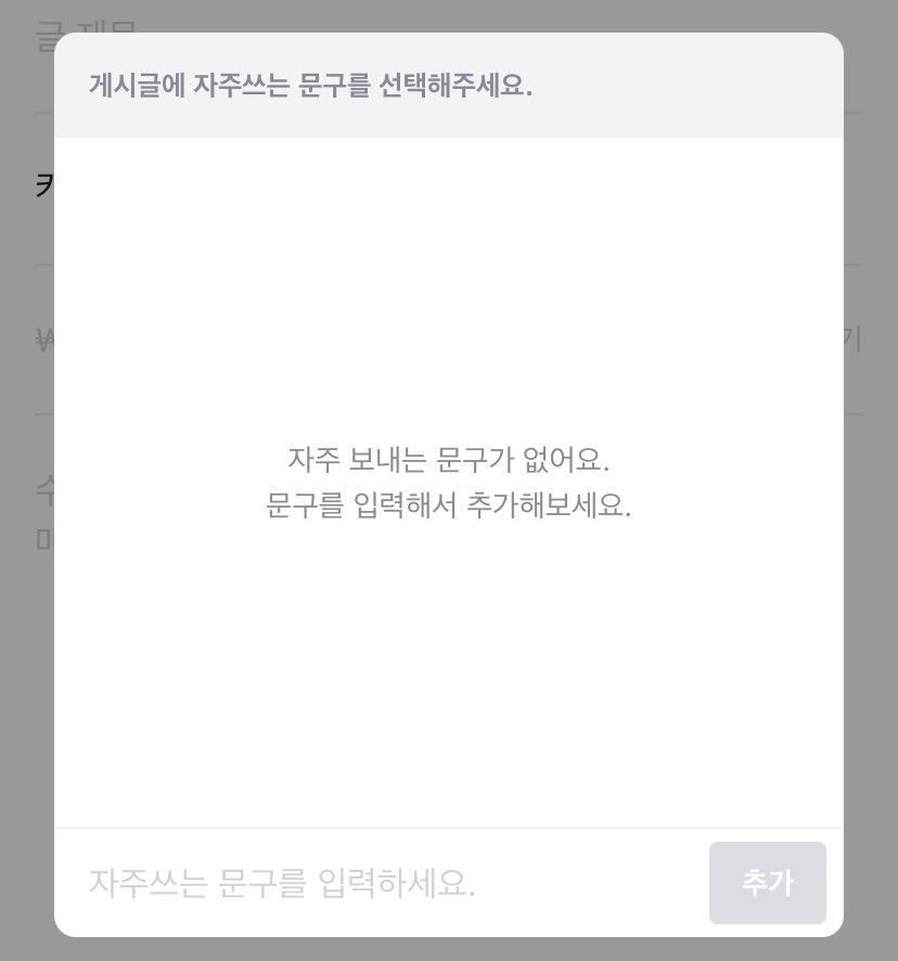 거래를 자주하시는 분들은 자주 보내는 문구도 설정이 가능합니다.