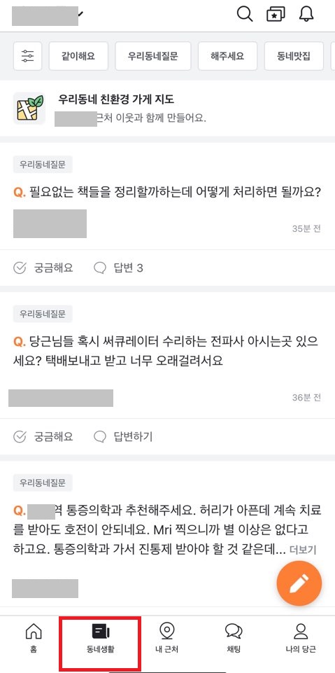 ★당근마켓 동네생활 서비스