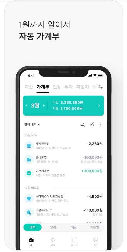 많은 분들이 가계부 수기로 입력하다 보면 작심삼일은 기본이지만 걱정 끝!! 자동으로 가계부가 작성됩니다.
