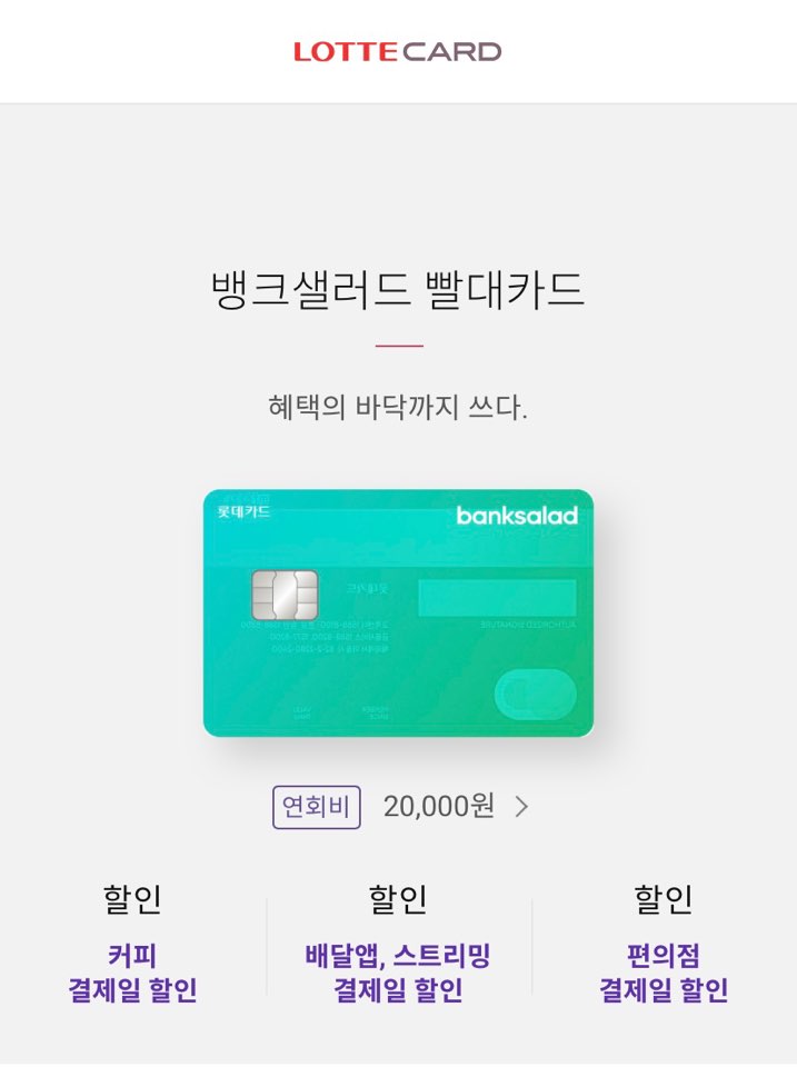 뱅크 샐러드 빨대 카드는 롯데카드사에서 발행한 카드인데요.