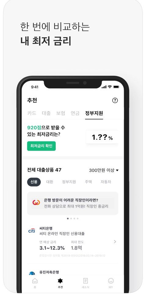 - 복잡한 절차 없이 금융사별 대출 금리 확인 가능!